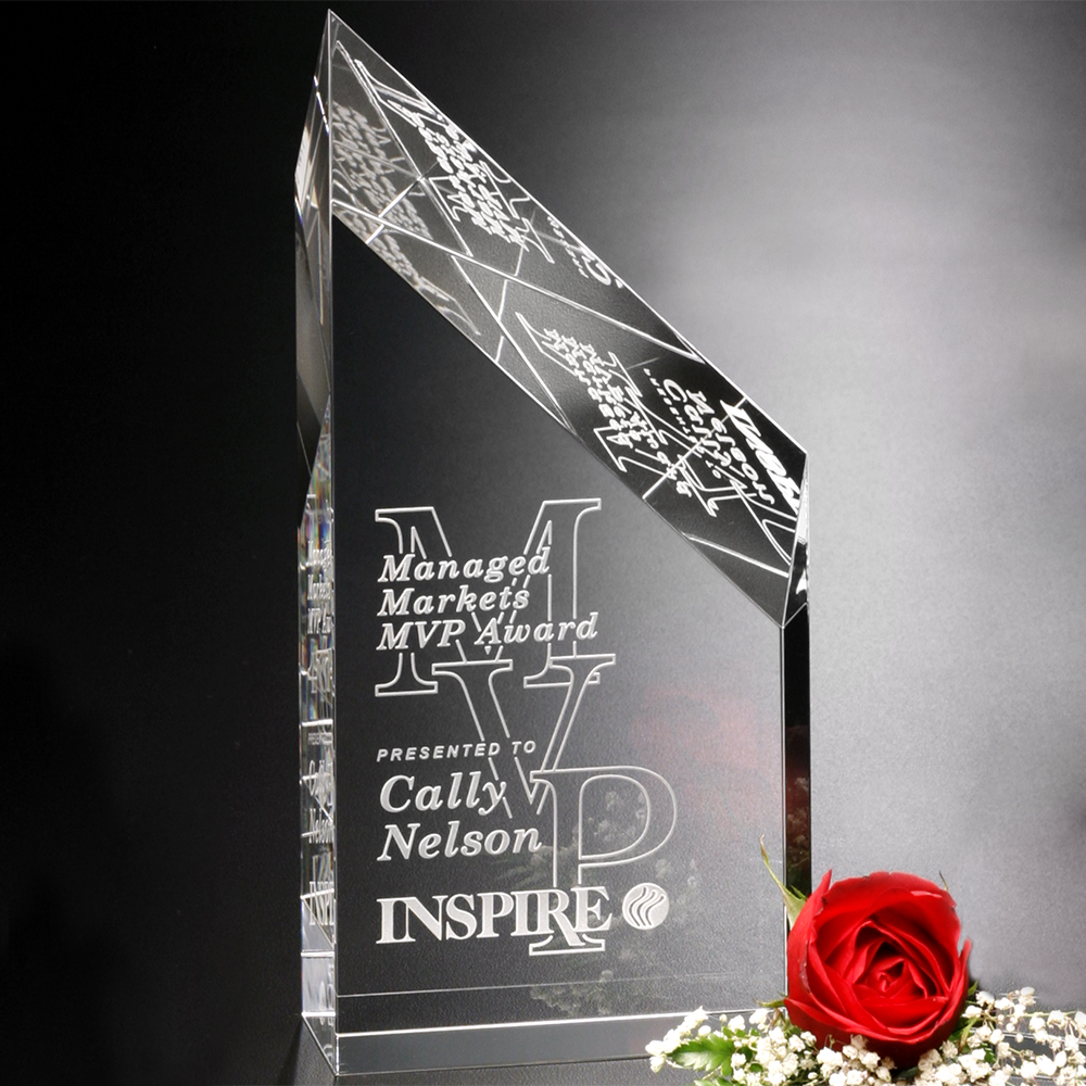 • Example: Award Maven’s Optic Mountain Award—a sharp-edged crystal peak that commands attention on any desk or lobby shelf.