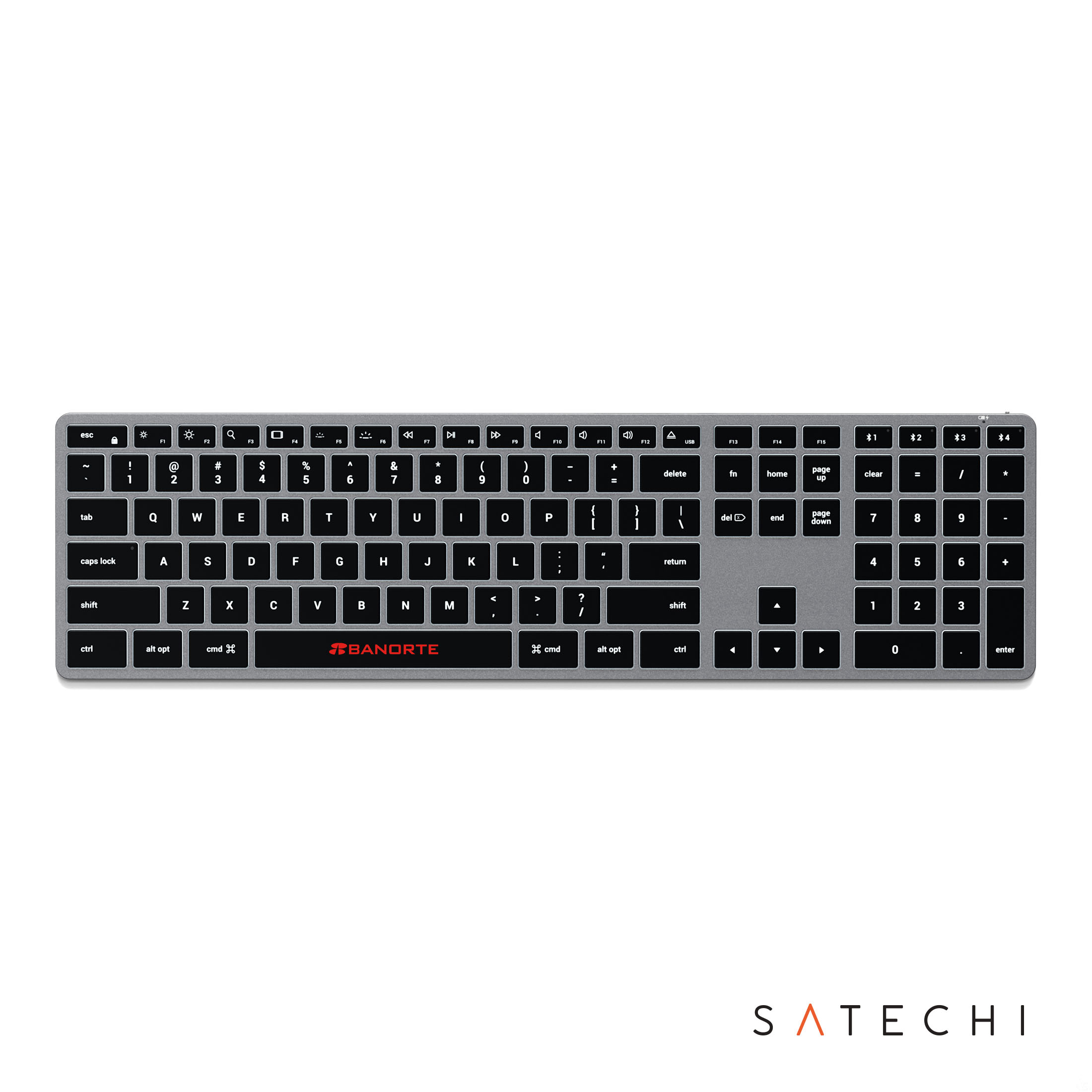 The SATECHI® Slim X3 Bluetooth Keyboard delivers a premium, full-size typing experience tailored for modern Apple workspaces. Featuring an extended layout with numeric keypad and macOS function keys, it offers seamless productivity in a sleek, ultra-slim aluminum design. Connect up to four devices via Bluetooth and switch effortlessly between them with dedicated keys. Adjustable backlit keys with multiple brightness levels enhance visibility in any environment, while the rechargeable USB-C battery ensures reliable, wireless performance. Designed for Mac, iPad, and iPhone, the Slim X3 is a stylish and efficient addition to any desk setup. Product Size: 16.69" W x 0.4" H x 4.5" D